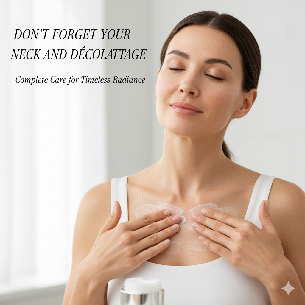 It’s tempting to stop suddenly at the jawline since we spend so much time taking care of our faces—cleaning, treating, and moisturizing every curve and contour. However, in actuality, the first areas to exhibit obvious symptoms of aging are frequently the neck and décolletage (the upper chest region). Compared to the face, these areas have thinner, more sensitive skin since they are regularly exposed to the sun and are frequently overlooked in daily activities. Remembering your neck and décolletage is more than just good beauty advice; it’s a crucial reminder that achieving actual radiance necessitates a comprehensive strategy that keeps the narrative of your skin constant from your forehead to your breast.
