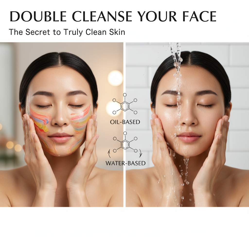 If you live in the modern world and deal with pollution, wear makeup, or just go about your hectic day, you may believe that a fast nighttime face wash is sufficient. However, just one step hardly scratches the surface of the accumulation on our skin for many of us. The Double Cleanse is useful in this situation. More than a trend, this procedure is a non-negotiable practice, particularly in the evening, that guarantees your skin is genuinely clean, allowing your serums and moisturizers to perform their magic. It’s about realizing that the two very different kinds of grime that stick to your face cannot be successfully cleaned by a single product.